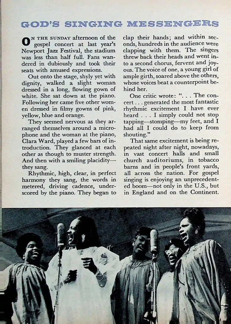 Ein Stück Zeitgeschichte: Dieser Artikel aus dem Jahr 1958 ist heute ein wertvolles Dokument dafür, wie Gospelmusik den Mainstream eroberte und Mahalia Jackson zur „Queen of Gospel“ krönte.