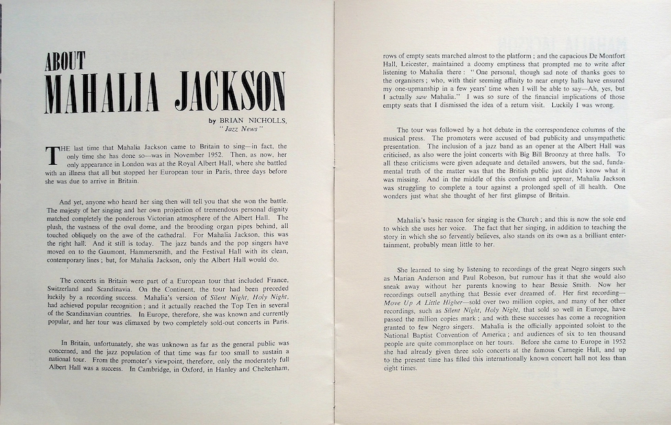 Mahalia Jackson, die sich noch gut an ihren letzten, wenig erfolgreichen Auftritt in der Royal Albert Hall erinnerte und inständig auf ein besseres Ergebnis hoffte, wurde nicht enttäuscht.