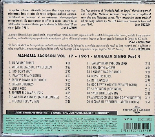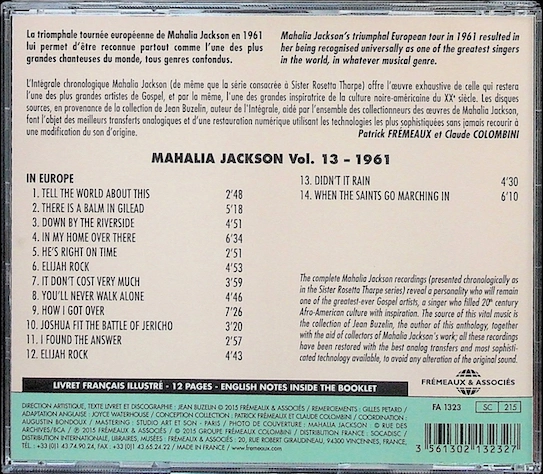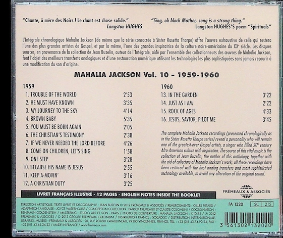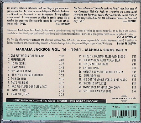 (bzw. das Label Frémeaux & Associés, das oft auch als Integrale bezeichnet wird), hat eine umfangreiche Gesamtausgabe der Aufnahmen von Mahalia Jackson veröffentlicht. Diese Serie ist bekannt für ihre akribische Zusammenstellung und Restaurierung der historischen Aufnahmen.