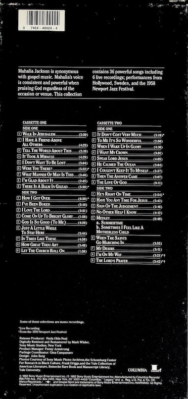 Beispiele für Mahalia Jackson Alben, die auch auf Kassette erhältlich waren: