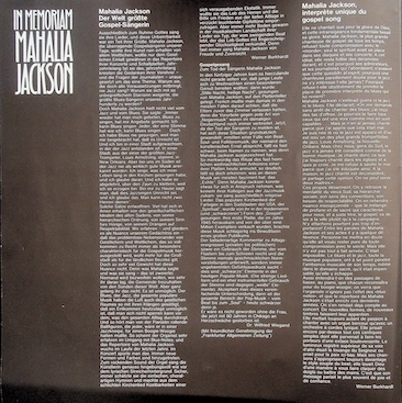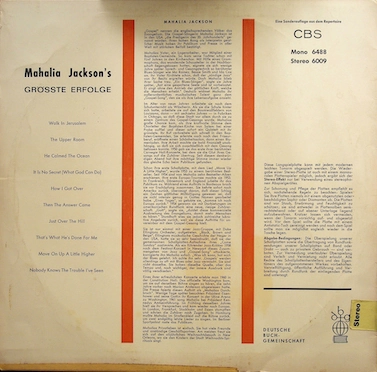 Mahalia Jackson wechselte 1954 zu Columbia Records. Zu diesem Zeitpunkt war die Vinylplatte bereits das führende Medium für Alben. Ihre ersten Aufnahmen für Columbia wurden direkt als Vinyl-LPs und -Singles veröffentlicht.