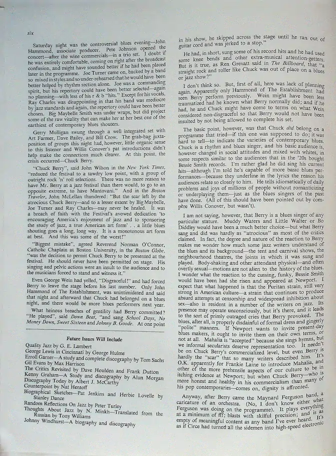 Einer der bedeutendsten Beiträge in Jazz Monthly war die Auseinandersetzung mit Mahalia Jacksons Rolle an der Schnittstelle von Gospel und Jazz.
