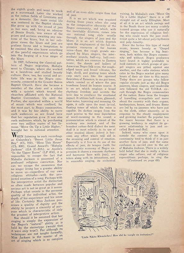 Mahalia war in der Ausgabe vom 27. September 1958 die Titelstory.