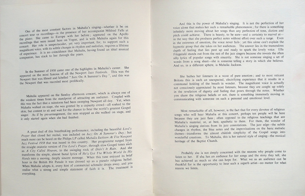 Mahalia Jackson, die sich noch gut an ihren letzten, wenig erfolgreichen Auftritt in der Royal Albert Hall erinnerte und inständig auf ein besseres Ergebnis hoffte, wurde nicht enttäuscht.