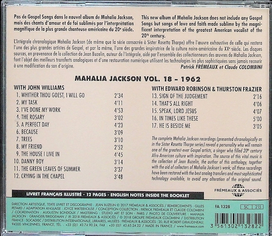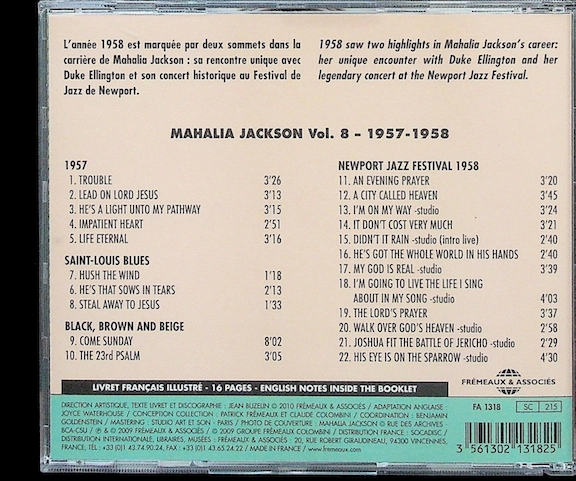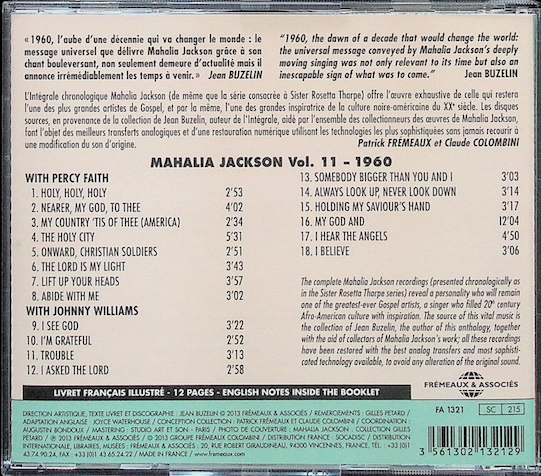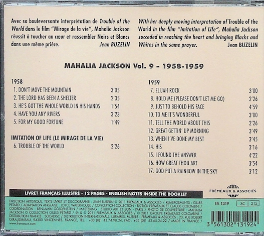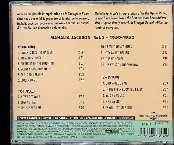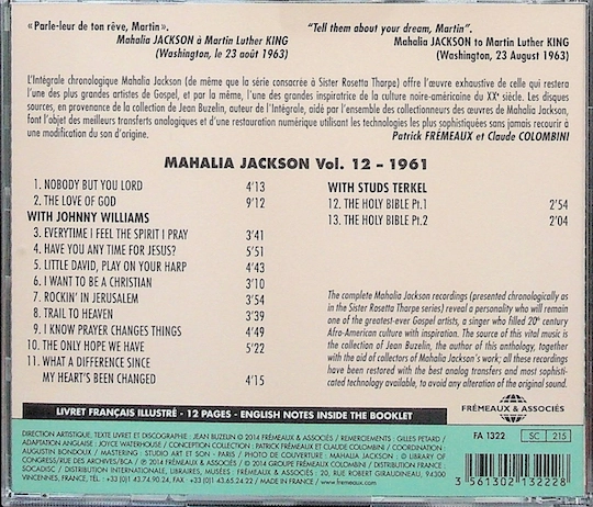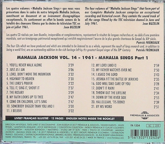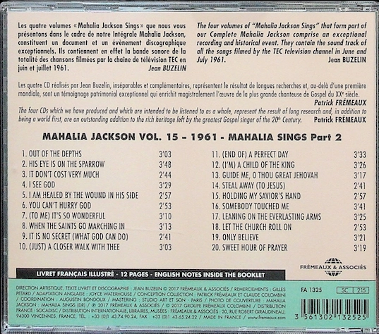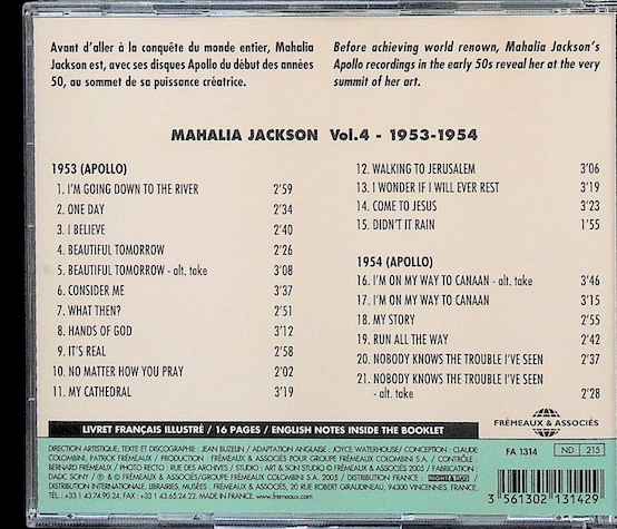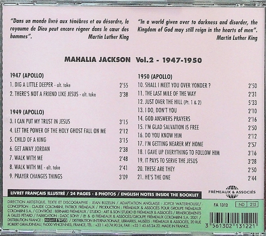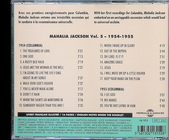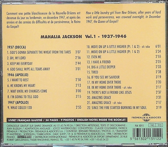 (bzw. das Label Frémeaux & Associés, das oft auch als Integrale bezeichnet wird), hat eine umfangreiche Gesamtausgabe der Aufnahmen von Mahalia Jackson veröffentlicht. Diese Serie ist bekannt für ihre akribische Zusammenstellung und Restaurierung der historischen Aufnahmen.