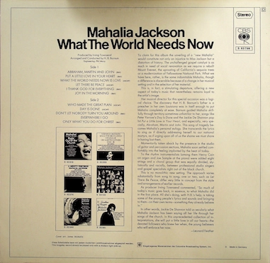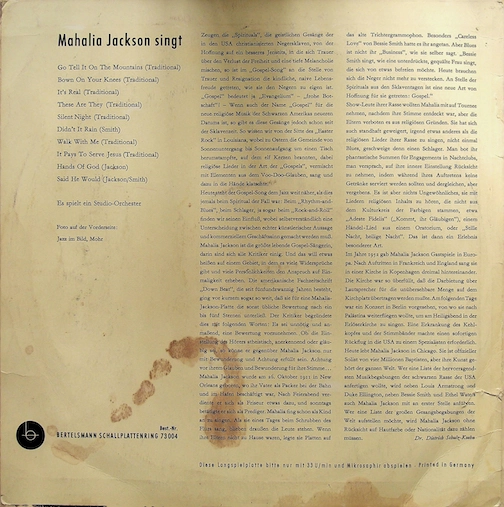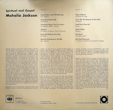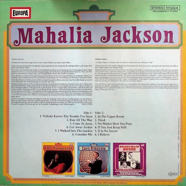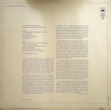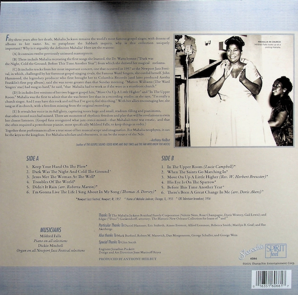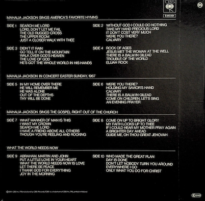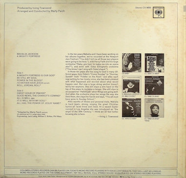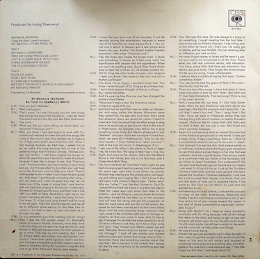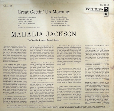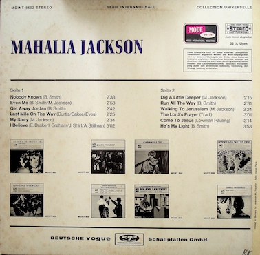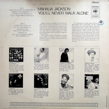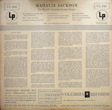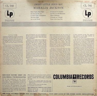 Mahalia Jackson wechselte 1954 zu Columbia Records. Zu diesem Zeitpunkt war die Vinylplatte bereits das führende Medium für Alben. Ihre ersten Aufnahmen für Columbia wurden direkt als Vinyl-LPs und -Singles veröffentlicht.
