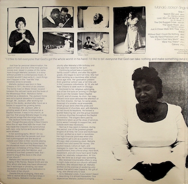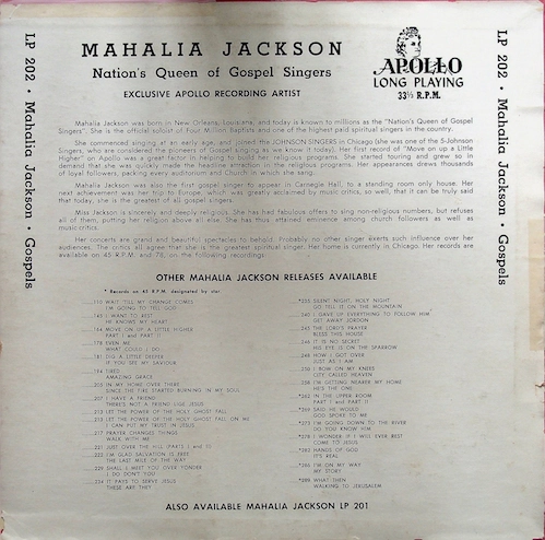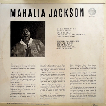 Mahalia Jackson begann ihre Karriere in der Schellack-Ära, aber ihre produktivste und international erfolgreichste Zeit fiel mit dem Aufkommen und der Dominanz der Vinylplatte zusammen.